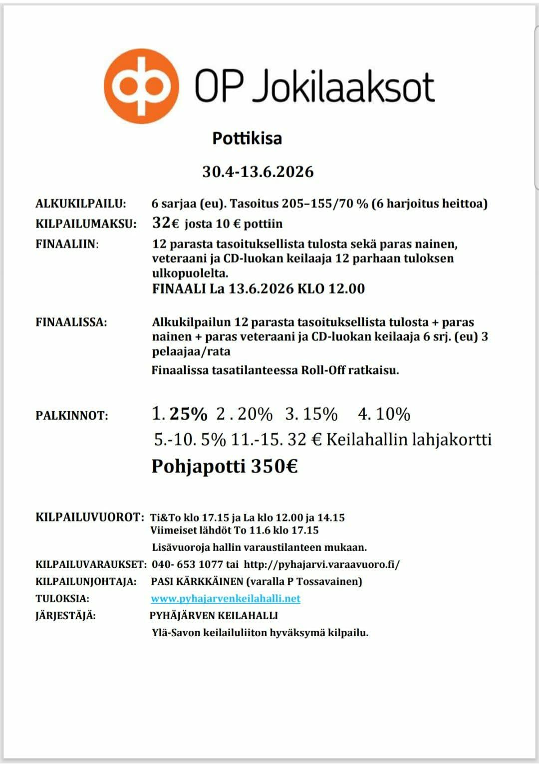 Ylä-Savon mestaruuskilpailut kisataan Pyhäjärven keilahallilla 14.3-15.3. Ilmoittautumiset TÄÄLTÄ. tai soittamalla Pyhäjärven keilahallille.